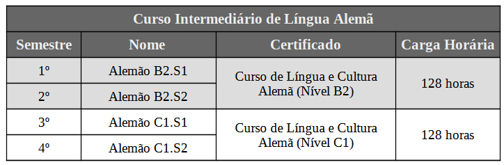 O curso Intermediário em Língua Alemã (Mittelstufe Deutsch – B2 e C1) treina os participantes para a obtenção do 4º e 5º certificados de proficiência em língua alemã – GOETHE ZERTIFIKAT-B2 e GOETHE ZERTIFIKAT-C1. Este último nível de proficiência citado é comumente exigido para a matrícula dos alunos que pretendem frequentar um curso universitário de graduação ou pós-graduação na Alemanha ou em países de língua alemã.