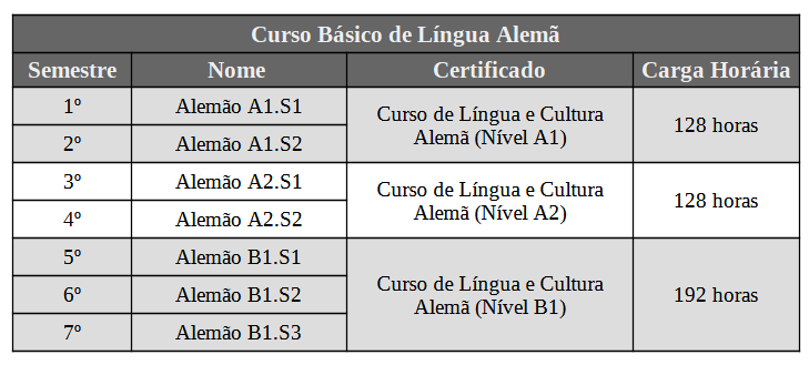 O curso Básico de Língua Alemã da CCA desenvolve de forma integrada as habilidades de ouvir, falar, ler e escrever em alemão. Os alunos que terminam o curso básico são capazes de se comunicar na maioria dos contextos e dão os primeiros passos para a obtenção de diferentes certificados de proficiência em alemão (níveis A1, A2 e B1), também ofertados pela CCA. Há duas formas de ingresso no curso básico de alemão: o exame de admissão para o semestre 1, para aqueles alunos que nunca estudaram alemão, e o teste de nível (para ingresso do 2º ao 6º semestres), direcionado àqueles que já possuem algum conhecimento da língua.